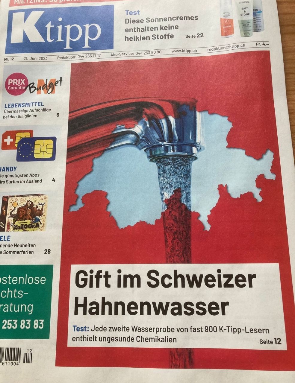 Auf 29 Giftstoffe hat das Konsumentenmagazin «K-Tipp» das Trinkwasser ihrer Leserinnen und Lesern testen lassen. Rund die Hälfte der Proben fielen positiv aus.