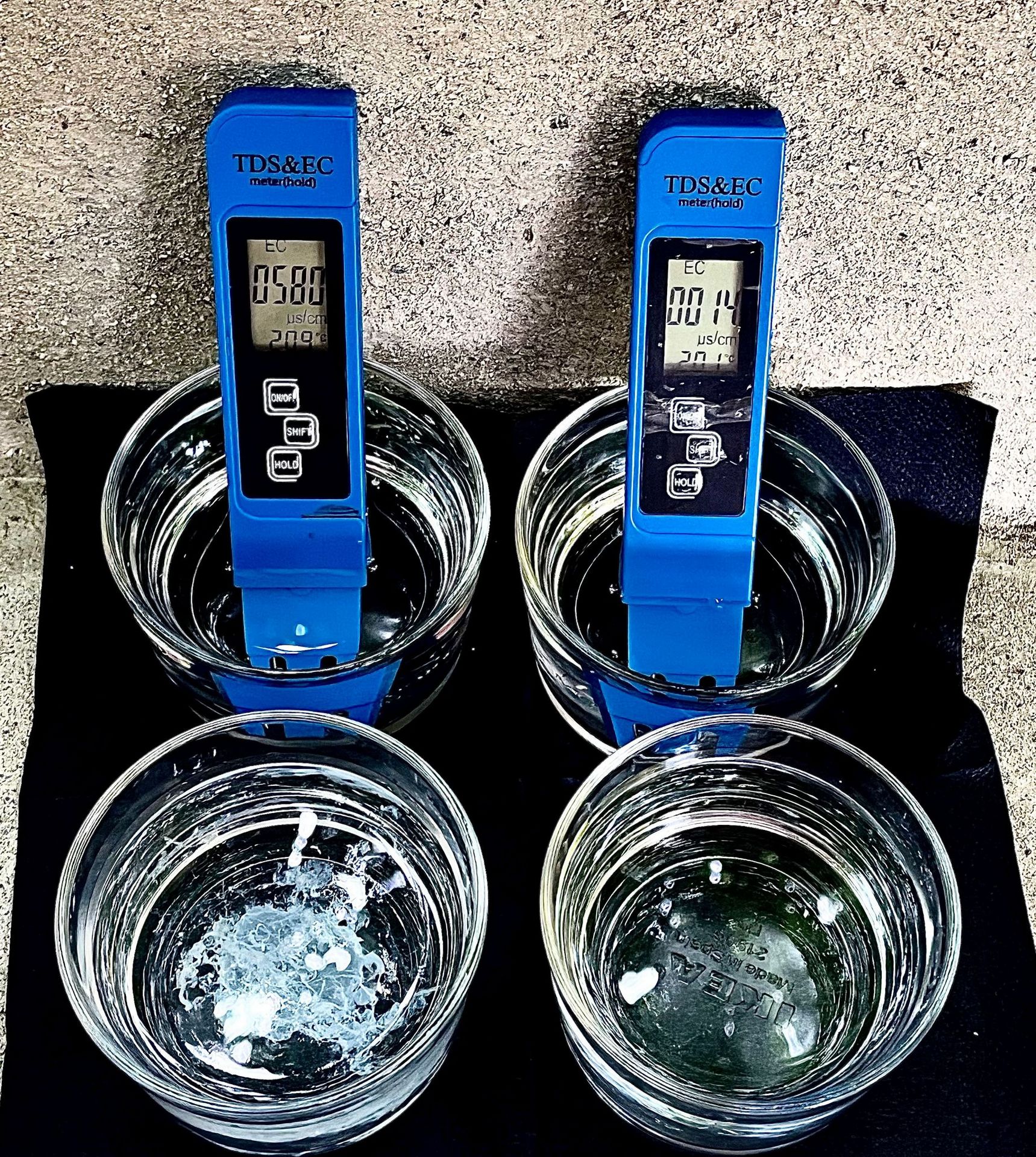 wird das Wasser auf leitfähige Substanzen und auf im Wasser enthaltene nicht
